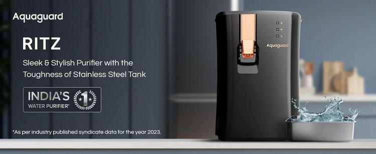 Presenting the all-new Aquaguard Ritz Pro - India’s First Smart Purifier with features like Device Health Check, Water Quality Indicator, Water Consumption Tracker, Filter Life Monitoring, and Automated Service Alerts.